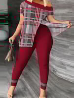 plus size casual outfits two piece set, women's Plus colorblock print one shoulder split hem medium stretch