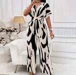 Fashion Jumpsuits for Women Dressy Short Sleeve Smocked High Waist Wide Leg Pants Loose Romper Outfi