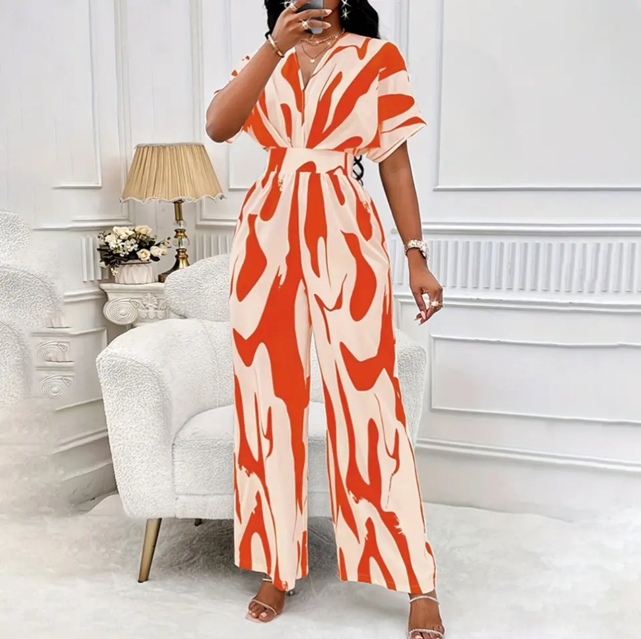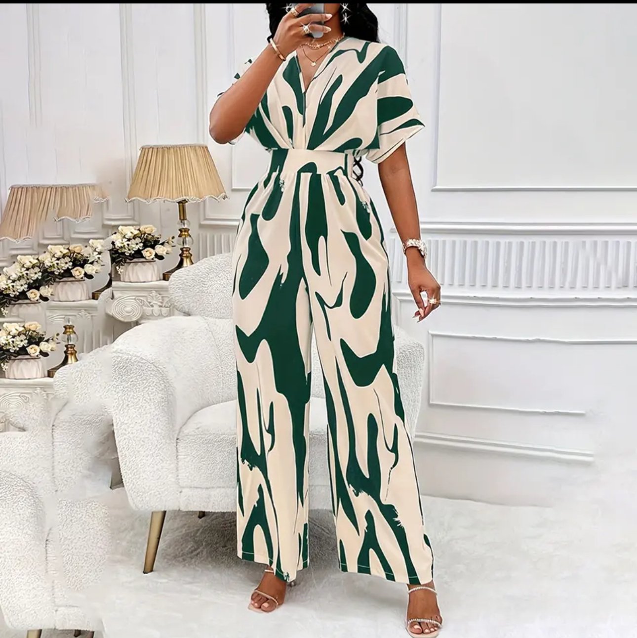 Design Details: This fashionable jumpsuit features a Square Neck and mock top, paired with an elastic high waist for a flattering look. Its wide-leg design and lantern short sleeves add a modern and playful touch. In elegant solid colors, it's both dressy and chic. Practical elements like side pockets and a belt enhance functionality. It's also maternity-friendly with a casual, loose fit. Available in plus sizes, this versatile jumpsuit is perfect for any woman, including expectant mothers.