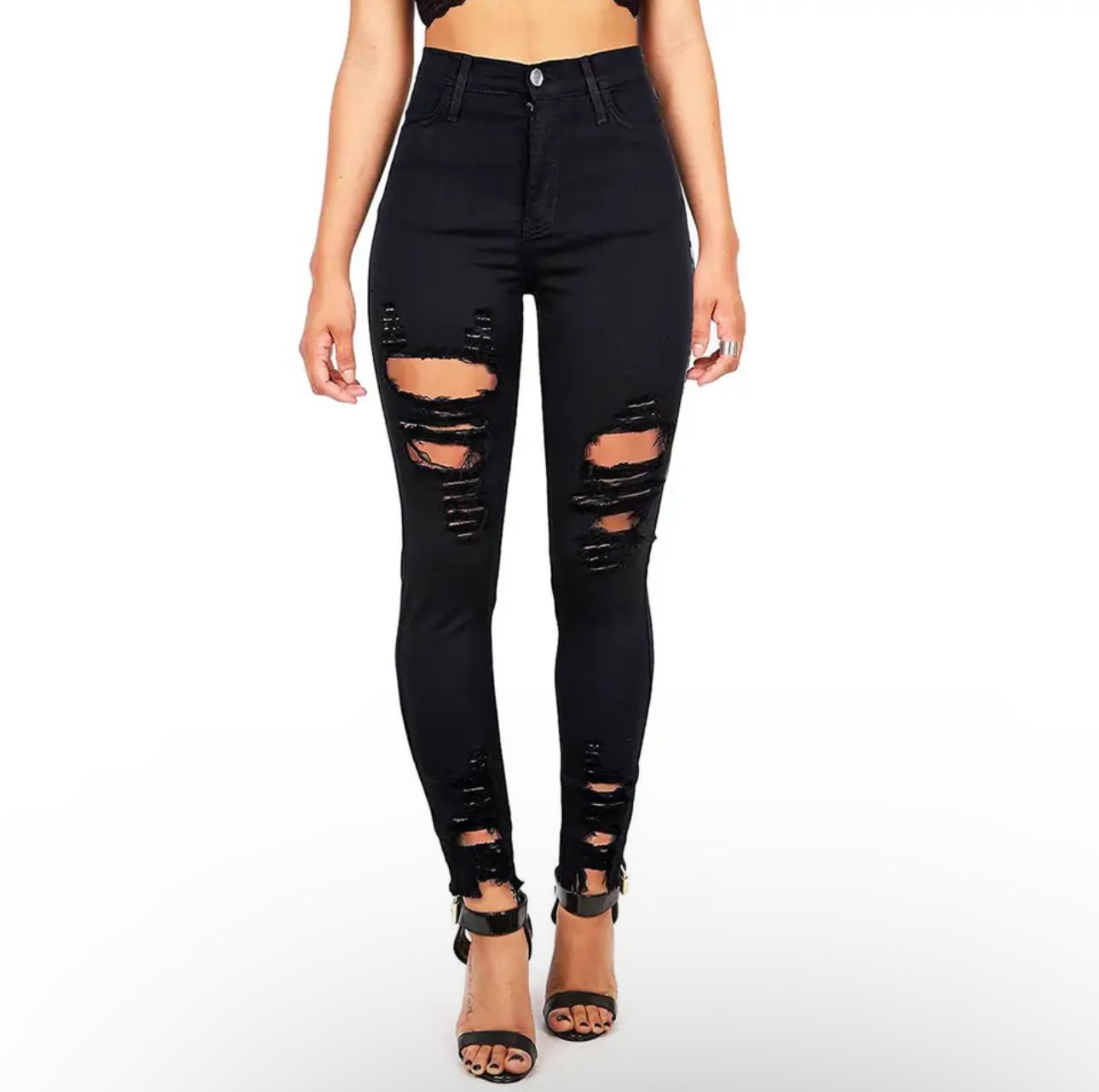 fashion women solid color slim fit Demin Pants button high waist pocket jeans trousers high quality